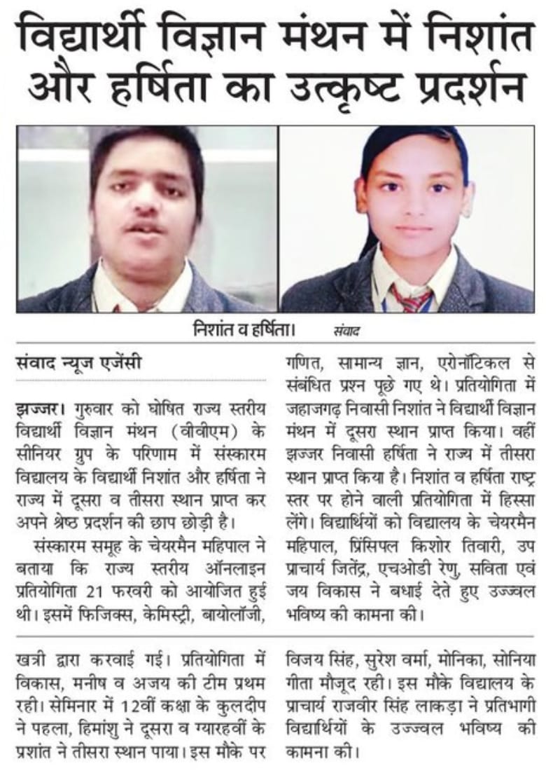We believe that a school is a place where students begin to learn lessons of life. The biggest challenge we all face today is to prepare students for a global market. We often ignore the fact that each child has their own individuality and special skills, for which we have taken an unprecedented initiative by introducing 'Career Vision Super 20' batches for IIT, JEE, NEET, MBBS, and other competitive exams like NDA, NTSE, CA & CS.